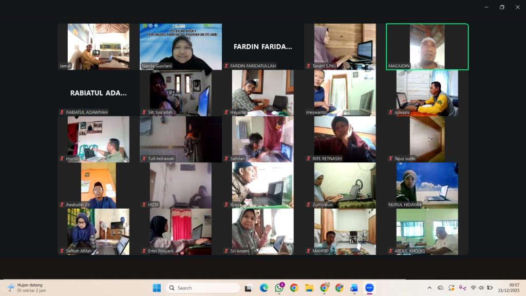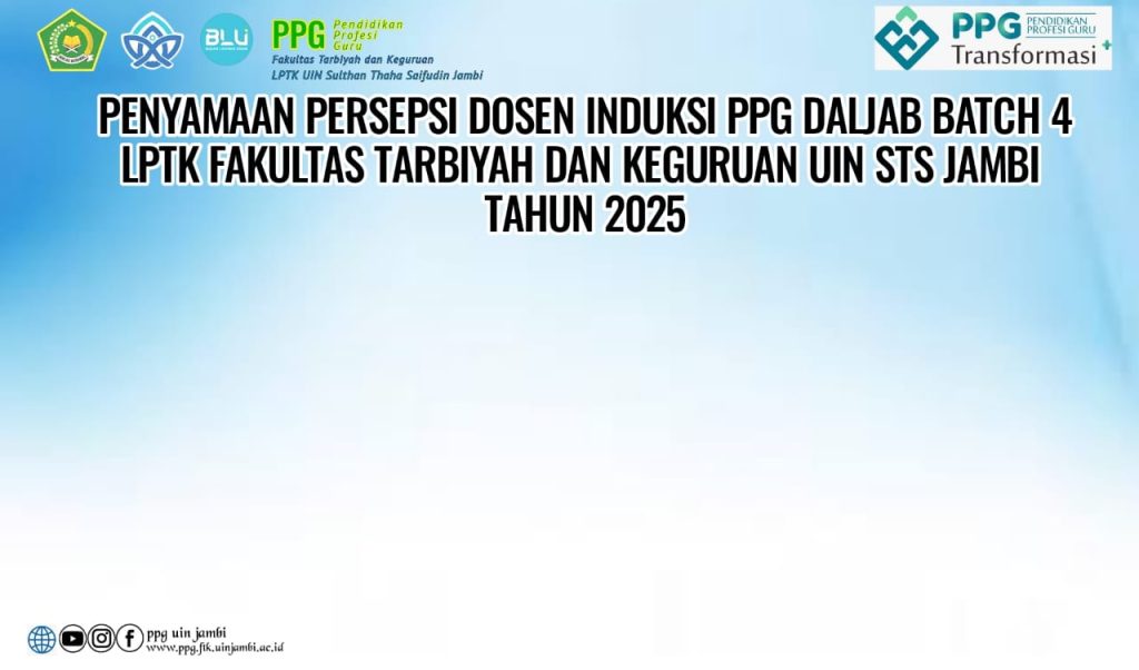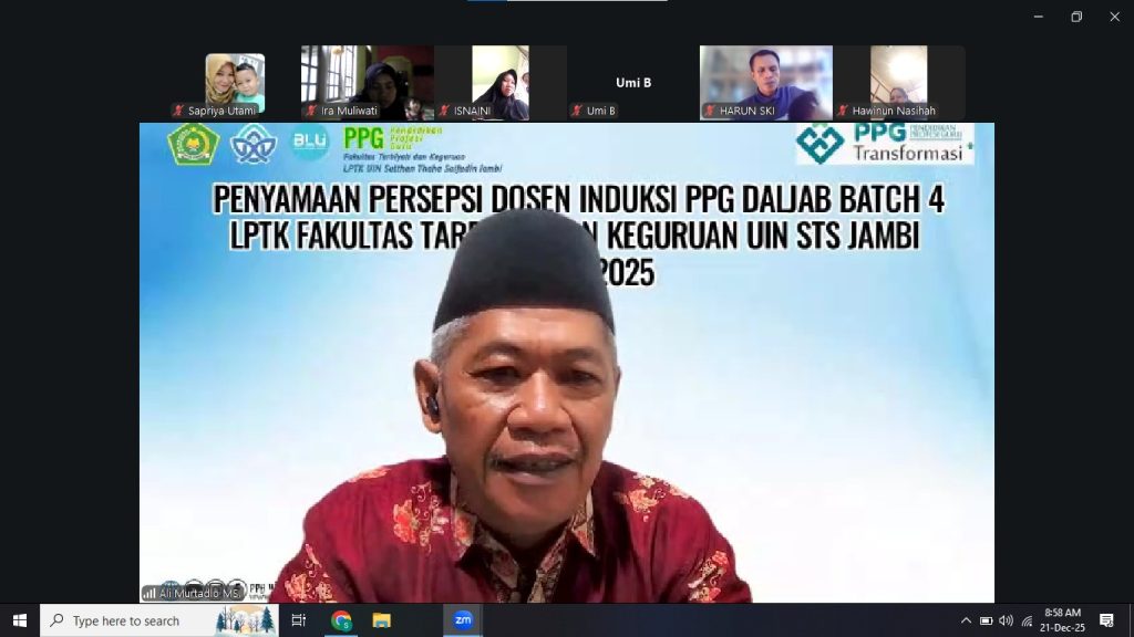PPG FTK UIN STS JAMBI – Lembaga Pendidikan Tenaga Kependidikan (LPTK) Fakultas Tarbiyah dan Keguruan (FTK) UIN Sulthan Thaha Saifuddin Jambi telah menyelenggarakan kegiatan Induksi Program Pendidikan Profesi Guru (PPG) Dalam Jabatan Transformasi bagi mahasiswa PPG yang telah menyelesaikan seluruh rangkaian pembelajaran melalui Learning Management System (LMS) yakni berlangsung pada tanggal 20-22 Desember 2025.