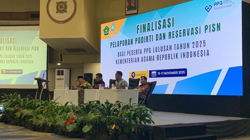 PPG FTK UIN STS Jambi – Dua orang admin dari Program Pendidikan Profesi Guru (PPG) LPTK Fakultas Tarbiyah dan Keguruan UIN Sulthan Thaha Saifuddin Jambii mengikuti kegiatan Pelaporan PDDikti, Reservasi Nomor Sertifikat Pendidik (PISN), dan Pembaruan Sertifikat PPG yang diselenggarakan oleh Panitia Nasional UKMPPG Kementerian Agama RI. Kegiatan ini berlangsung selama 15–17 November 2025 di Mercure Convention Center Ancol, Jakarta.